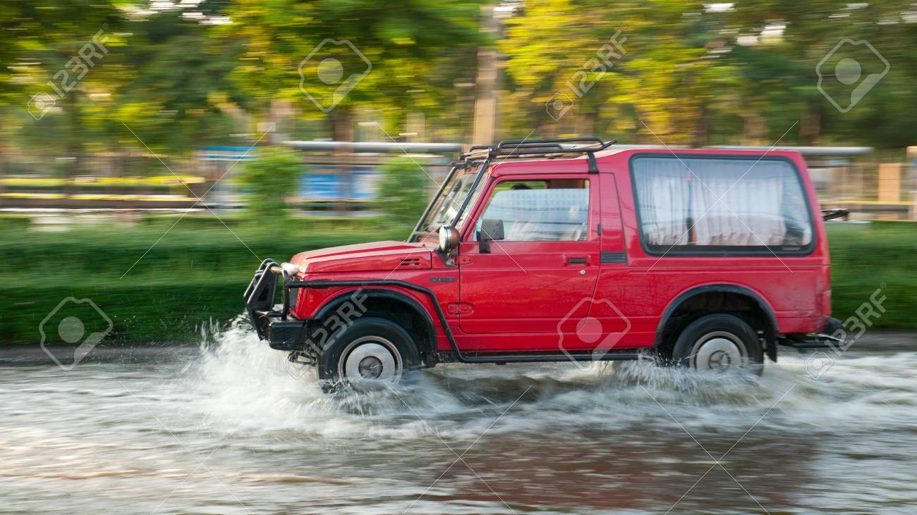 Bangkok Thailand November 6 Small Suv Driving Down A Flooded