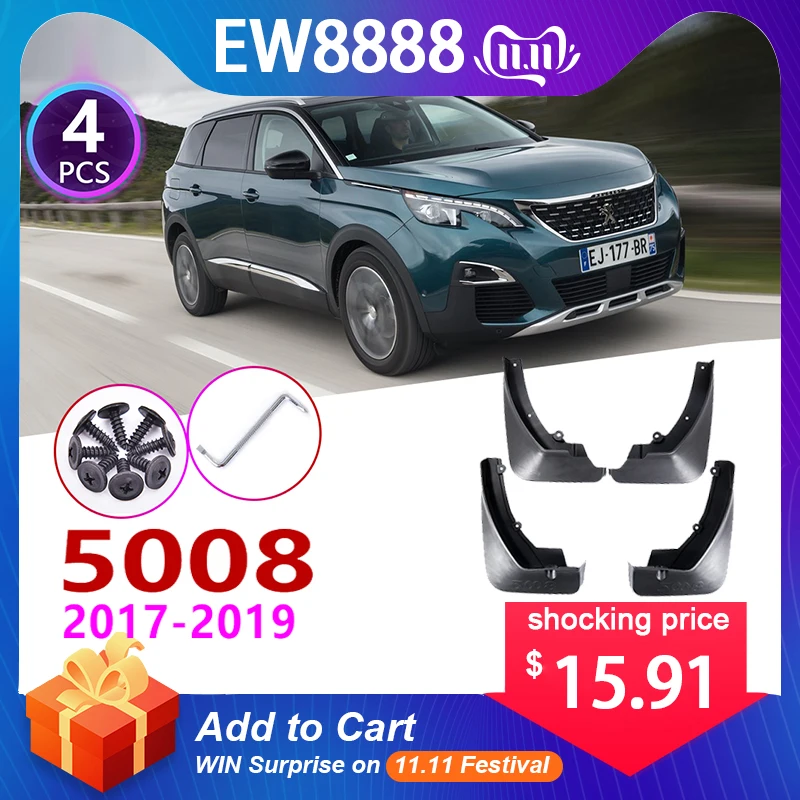 Sale 4 Pcs Front Rear Car Mudflap For Peugeot 5008 2017 2018 2019